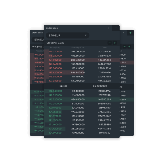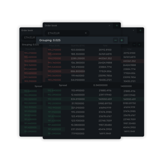 Evaluate the depth of liquidity using grouping feature in the orderbooks on all the available pairs Trading platform