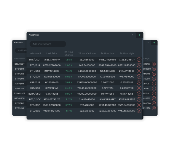 A widget that can help you to monitor the current prices, volumes and 24 hour highs & lows for preferred pairs.